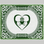 The traditional symbol of Ireland is woven into this luxurious cotton throw. Two hands holding a crowned heart are the center of focus while a lovely ornate border encases the symbol. It is woven in a lovely Irish green and natural.