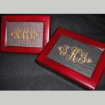 Looking for a great Thank You Gift for the members of your wedding party or anyone you want to impress with a personalized gift that will be used over and over again. This mahogany finished jewelry box is finished inside in black velveteen and can be monogrammed in gold thread on a black or brown background. Overall dimensions are 7.75" long x 5.75" wide x 2.25" high.
