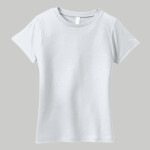 6.1-ounce, 100% cotton (preshrunk) Seamless double-needle collar Double-needle sleeves and hem Taped neck and shoulders Feminine shoulder, arm and sleeve styling Relaxed fit Sports Grey 90/10 cotton/poly. Ladies Sizes XS-3XL
